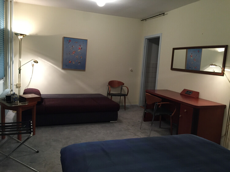 Business apartment: quiet studio for 1-2 persons with panoramic views and sunny balcony, located in a green neighbourhood Mariahoeve of The Hague in the vicinity of shops, 10 mins by tram 6 to the city centre. Not far from the seashore, Delft, Leiden and Amsterdam. 990 euro per month excluding the facilities.