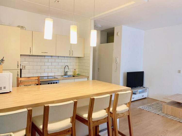 Fully furnished and turnkey studio located in the city-centre with balcony. The studio is located in a secure apartment complex with intercom system. The apartment is in excellent condition with nice laminate flooring and a modern kitchen. There is built-in storage / closet space in the apartment and a private external storage as well. This apartment is perfect for a young professional, student or couple.