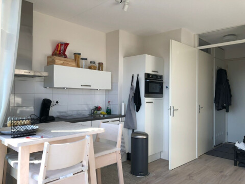 Deze studio heeft een open keuken en een heerlijk balkon waar je van het mooie uitzicht van de Hofstad kan genieten.