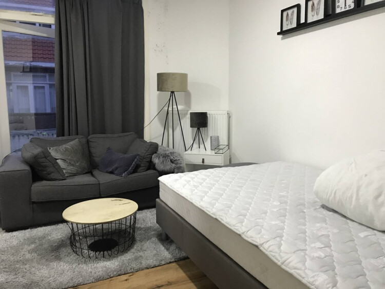 Modern and newly renovated & furnished studio with balcony. Located in a charming and sunny street at walking distance to The International School of The Hague and Holland Spoor station. Laminate flooring and brand new furniture. This is a uniquely styled studio apartment perfect for a student or professional. The toilet is shared with one person.