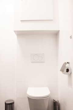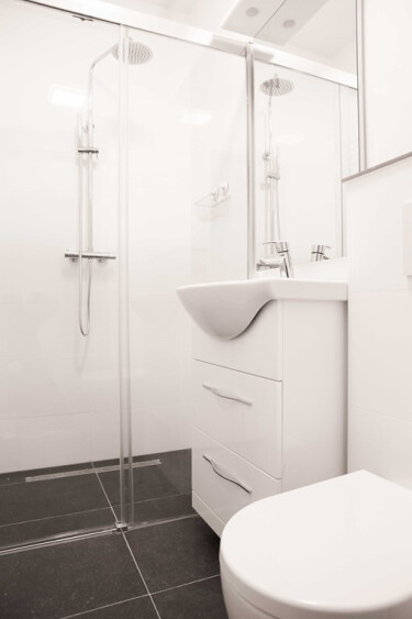 - moderne badkamer met ruime inloopdouche, wastafelmeubel en toilet