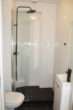 Indeling: gemeenschappelijk entree op de begane grond, trap naar de eerste etage, ruime studio volledig gemeubileerd, keuken voorzien van diverse luxe apparatuur ( magnetron, afzuigkap, kookplaat, vaatwasser, koelkast ), badkamer voorzien van douche / wastafel en toilet. Maandelijkse huurprijs is inclusief gas, water elektra en kabel tv.